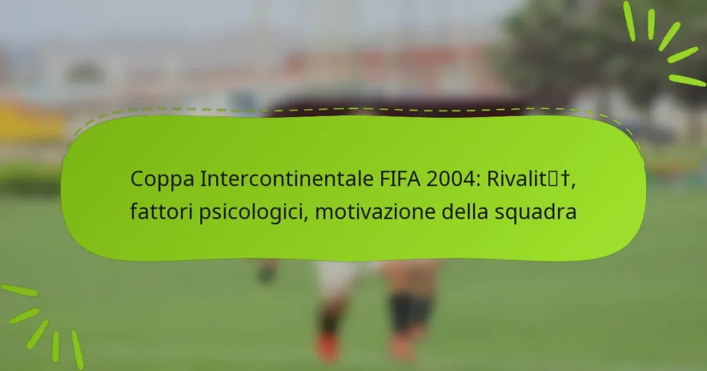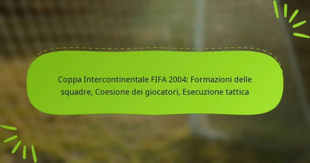 La Coppa Intercontinentale FIFA 2004 ha messo in evidenza l’importanza della flessibilità tattica e dell’adattabilità nel calcio. Le squadre hanno dimostrato la loro capacità di adattare formazioni e strategie in tempo reale, rispondendo in modo efficace alla natura dinamica delle partite. Gli allenatori hanno svolto un ruolo fondamentale nell’implementare questi aggiustamenti durante il gioco, che alla fine hanno influenzato gli esiti delle partite. Key sections in the article: Toggle Quali sono state le principali strategie tattiche utilizzate nella Coppa Intercontinentale…