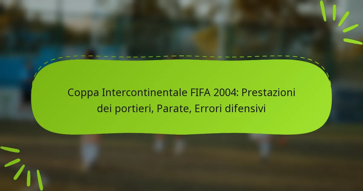 La Coppa Intercontinentale FIFA 2004 ha messo in evidenza il ruolo cruciale dei portieri attraverso prestazioni eccezionali che hanno plasmato gli esiti del torneo. Parate chiave non solo hanno mantenuto i vantaggi, ma hanno anche cambiato il momentum, mentre errori difensivi hanno creato opportunità critiche per gli avversari, influenzando infine la dinamica e i risultati delle partite.
