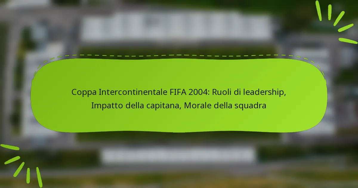 La leadership ha svolto un ruolo cruciale nel plasmare il morale della squadra durante la Coppa Intercontinentale FIFA 2004, influenzando direttamente le prestazioni e l’unità. Capitani forti e allenamenti efficaci hanno promosso un ambiente in cui i giocatori si sentivano motivati e connessi, migliorando il loro gioco complessivo.