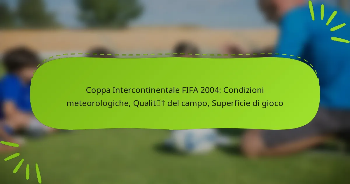 La Coppa Intercontinentale FIFA 2004 ha evidenziato l’impatto significativo delle condizioni meteorologiche, della qualità del campo e della superficie di gioco sulle prestazioni della partita. Comprendere questi fattori può aiutare le squadre a prepararsi meglio per le future competizioni.